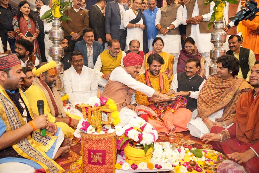 मुख्यमंत्री ने बागेश्वर धाम के पीठाधीश्वर पंडित धीरेंद्र कृष्ण शास्त्री को हल्दी लगाकर विवाह महोत्सव की पारंपरिक शुरुआत की। इसके बाद धीरेंद्र शास्त्री ने भी मुख्यमंत्री सहित मंच पर मौजूद जनप्रतिनिधियों और संतों को हल्दी लगाकर स्वागत किया। पूरा परिसर वैदिक मंत्रोच्चार, ढोल-नगाड़ों और जयकारों से गूंज उठा।