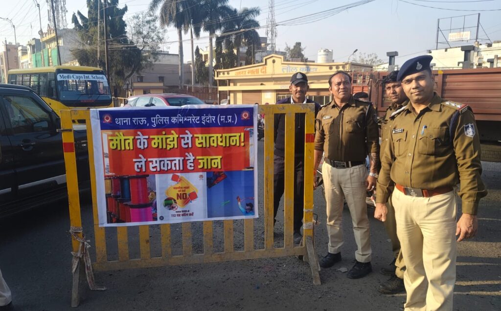 परदेशीपुरा थाना क्षेत्र में पोस्टर और जनसंवाद के जरिए दुकानदारों को खरीदी-बिक्री व भंडारण पर प्रतिबंध की जानकारी दी गई, वहीं खुले मैदानों में मिले पुराने मांझे को जलाकर नष्ट किया गया। तिलक नगर क्षेत्र में वर्ल्ड कप चौराहा सहित चिन्हित स्थानों पर सेफ्टी वायर, चेतावनी बैनर और स्टॉपर लगवाकर राहगीरों की सुरक्षा सुनिश्चित की गई।