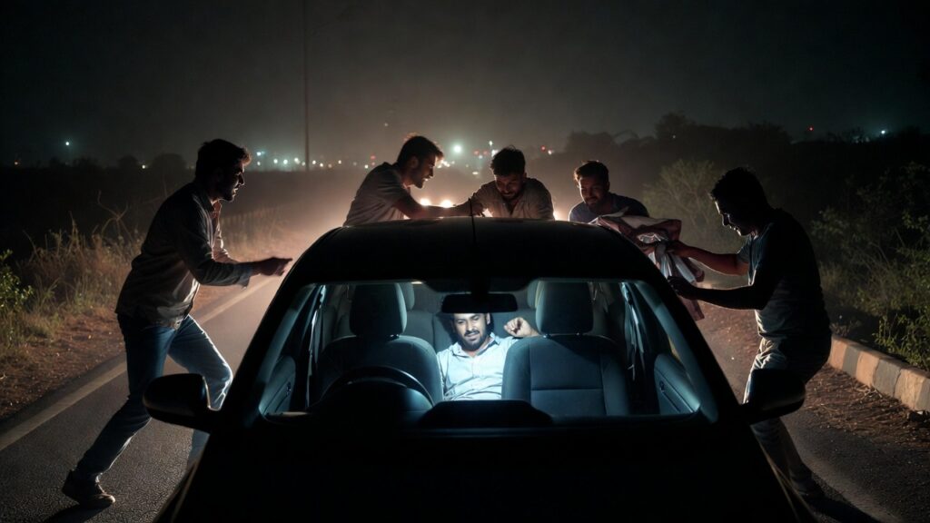 आरोपियों ने तनिष्क को करीब आधे घंटे तक बायपास रोड पर बंधक बनाकर घुमाया। कार के भीतर लगातार मारपीट… जान से मारने की धमकियां… और फिर शुरू हुई लूट। हाथ से सोने की अंगूठी उतरवाई, ब्रेसलेट छीना, घड़ी और महंगा चश्मा भी छीन लिया। यानी पहले हमला, फिर अपहरण, फिर लूट पूरी पटकथा पहले से लिखी हुई थी।