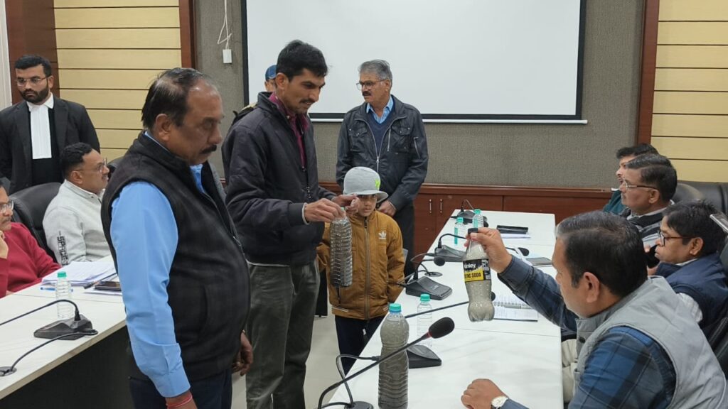 इसी को लेकर मंगलवार को इंदौर कलेक्ट्रेट में आयोजित जनसुनवाई के दौरान उस वक्त हड़कंप मच गया, जब भागीरथपुरा के रहवासी हाथों में गंदे पानी से भरी बोतलें लेकर पहुँच गए। लोगों ने प्रशासन को वही पानी दिखाया, जिसे पीने के लिए वे मजबूर हैं।