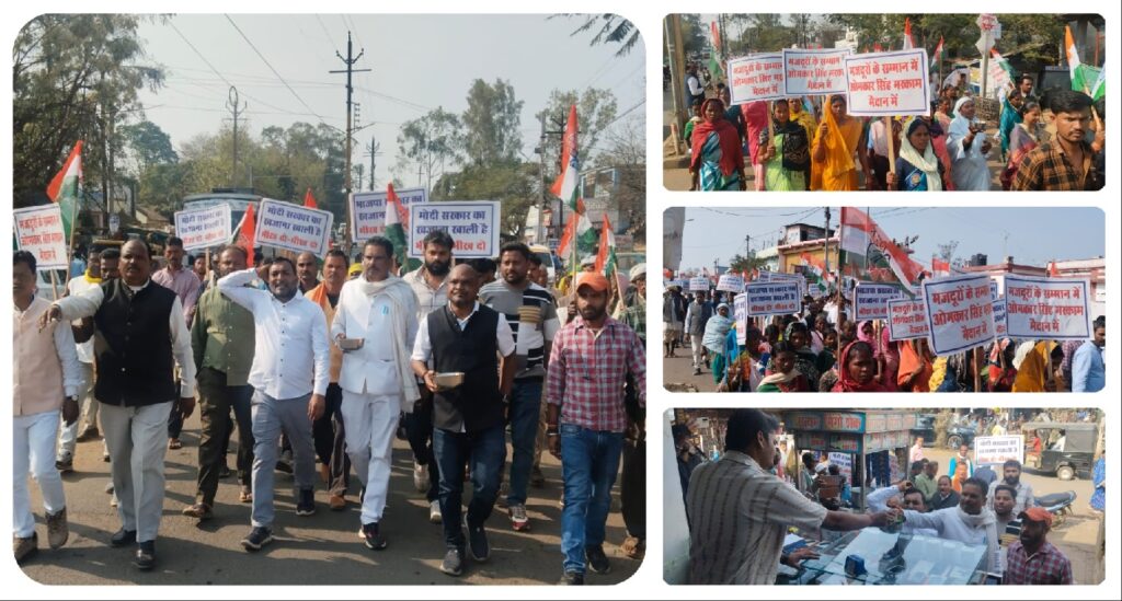 मध्यप्रदेश के डिंडौरी जिले में महात्मा गांधी राष्ट्रीय ग्रामीण रोजगार गारंटी अधिनियम यानी महात्मा गांधी राष्ट्रीय ग्रामीण रोजगार गारंटी अधिनियम (मनरेगा) के तहत मजदूरी भुगतान में हो रही देरी को लेकर शुक्रवार को जिला मुख्यालय में अनोखा विरोध प्रदर्शन देखने को मिला। जिला कांग्रेस कमेटी के नेतृत्व में निकाली गई आक्रोश रैली में विधायक, पूर्व विधायक और बड़ी संख्या में मजदूरों ने कटोरा लेकर सड़कों पर भीख मांगी और सरकार पर मजदूरों के हक मारने का आरोप लगाया।